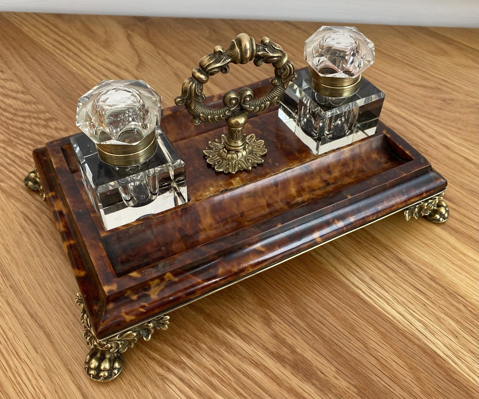 Regency Tortoiseshell & Brass Ink Standish