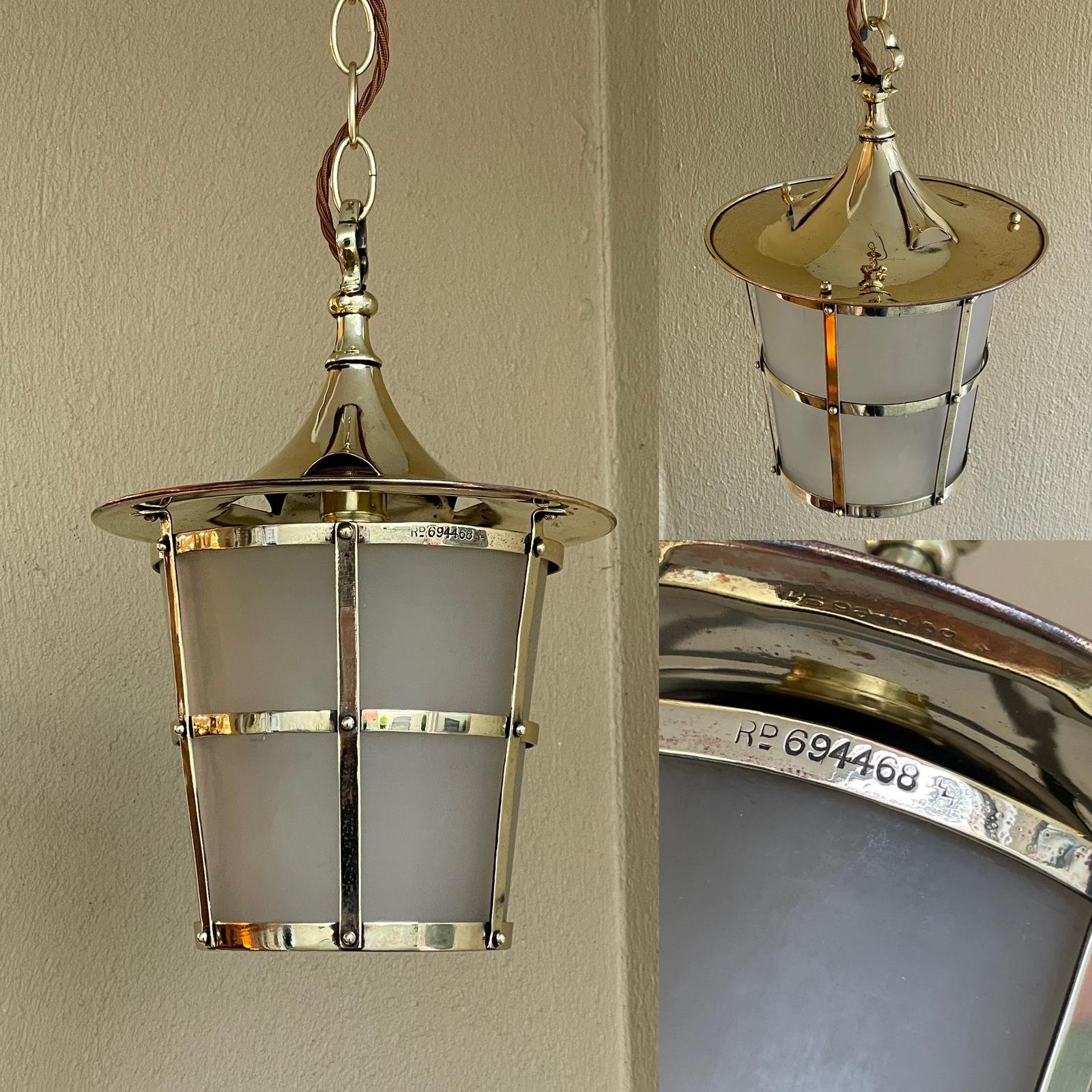 Registered Design Arts & Crafts Brass Hall Lantern
