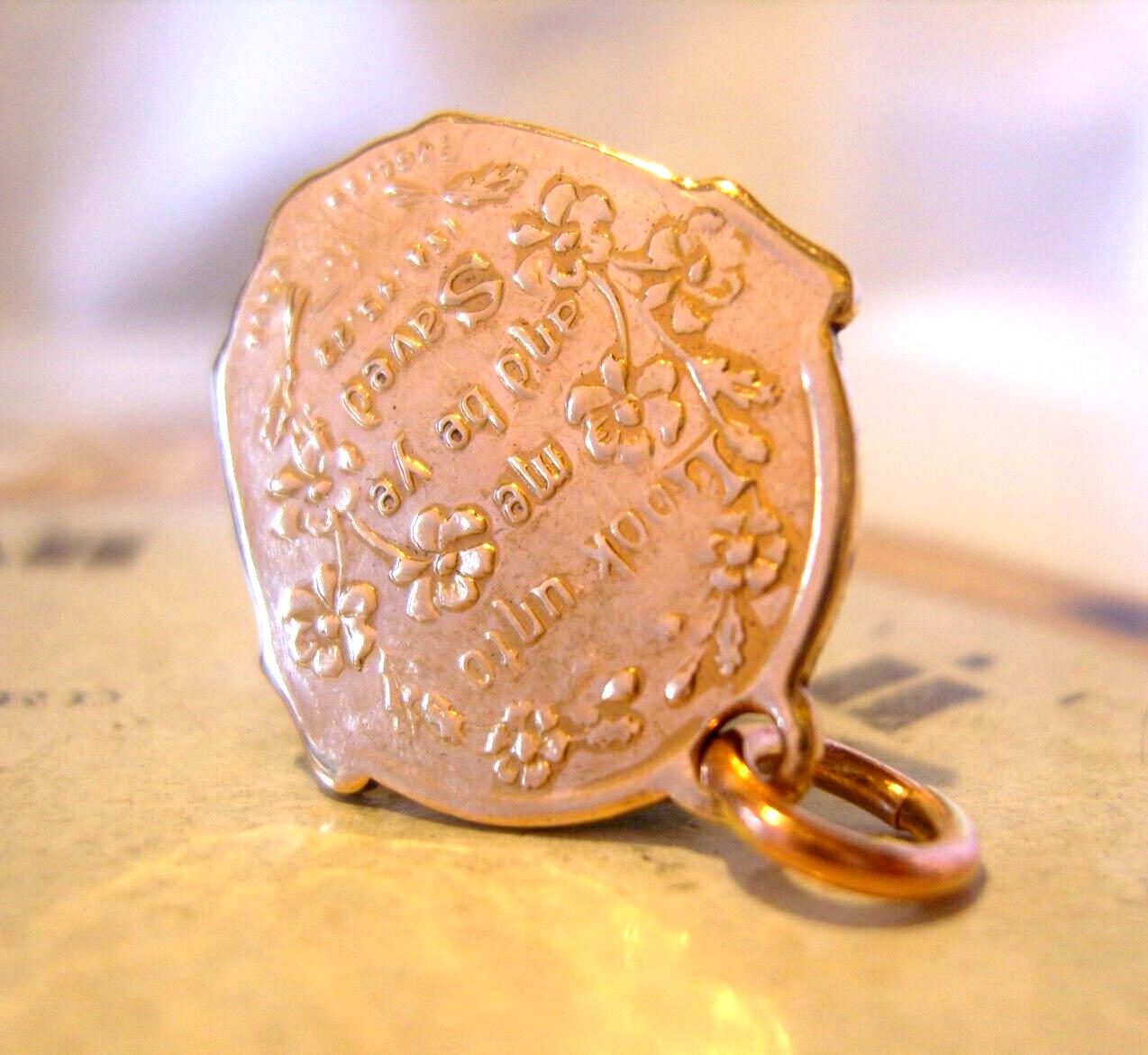 Religious Fob 1920s Antique Rose Gilt Pocket Watch Chain Prayer Shield Fob