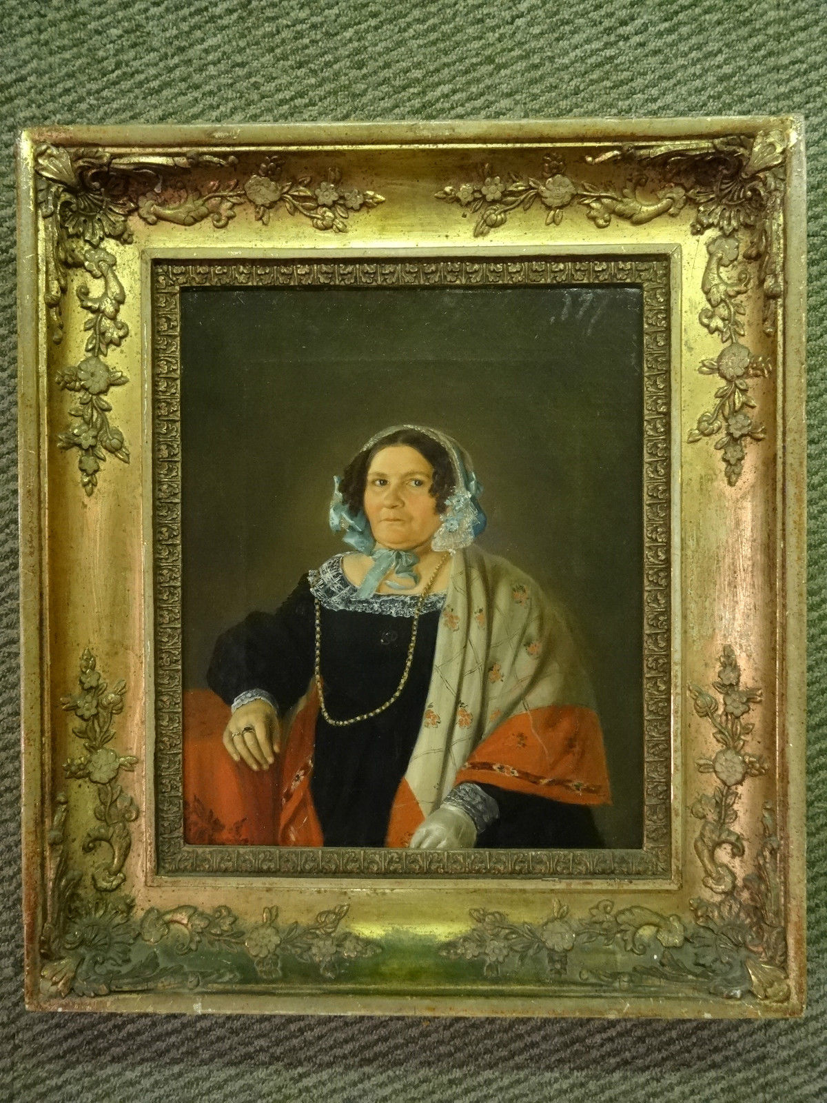 Remarkable 19th Century Half Length Oil Portrait Painting of a Gents Wife
