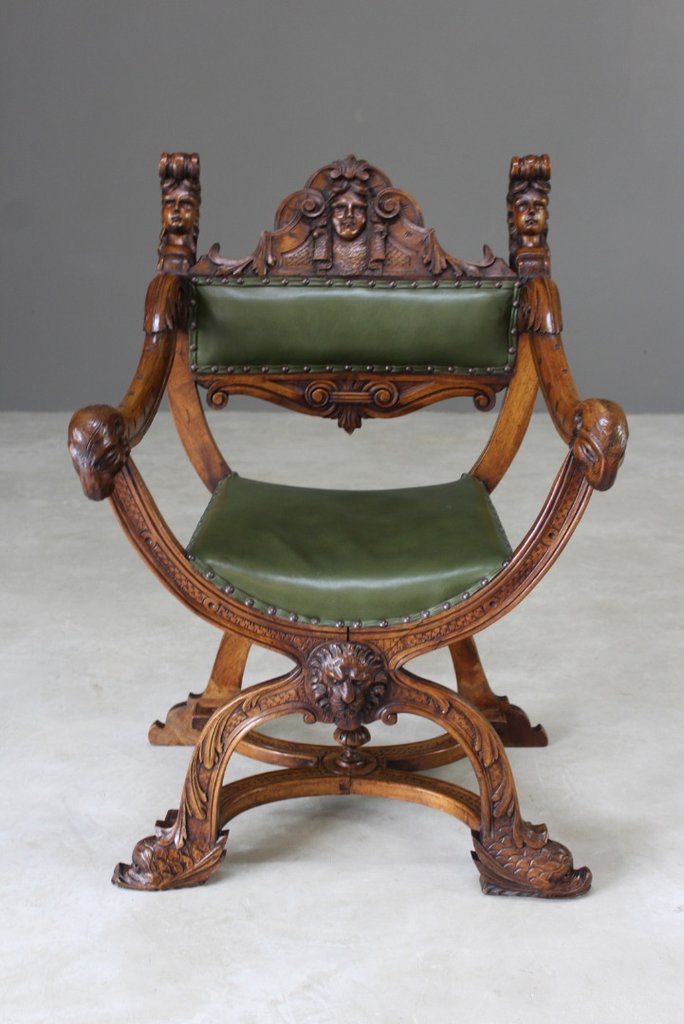 Renaissance Style Carved Walnut Savonarola Chair (1 of 1)