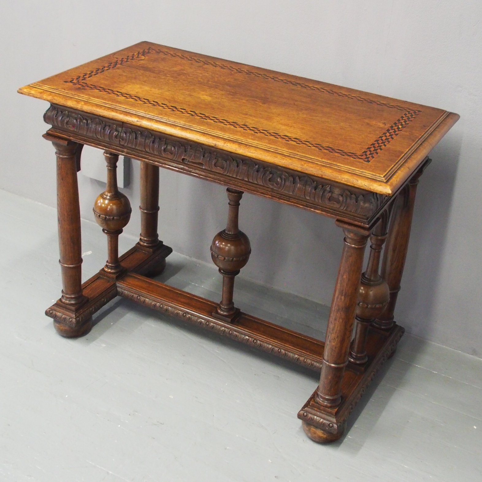 Renaissance Style Inlaid Oak Hall Table c.1860