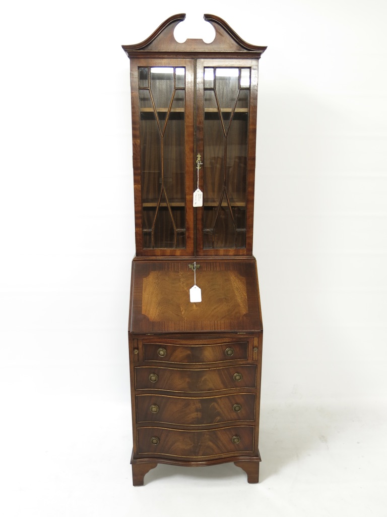 Reproduction Bureau Bookcase with Glazed Top Over Drop Front + 4 Drawers