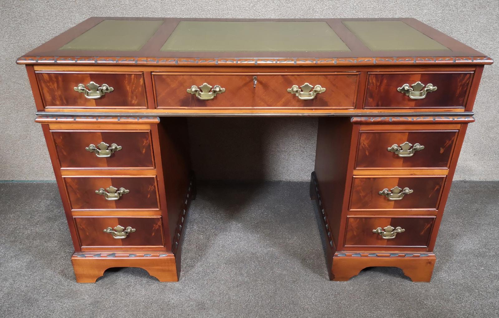 Reproduction Carved Mahogany Kneehole Pedestal Desk (1 of 11)