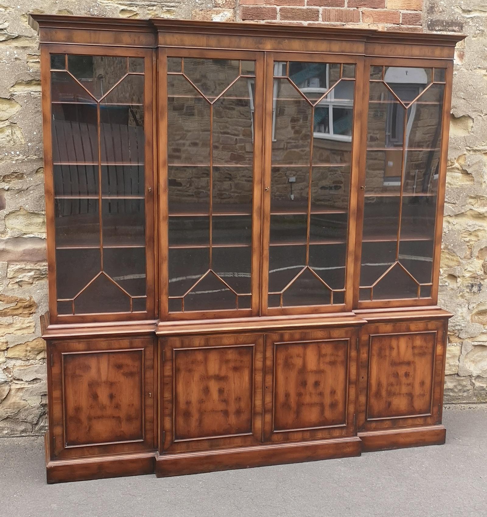 Reprodux Bevan Funnell Four Door Yew Wood Breakfront Bookcase