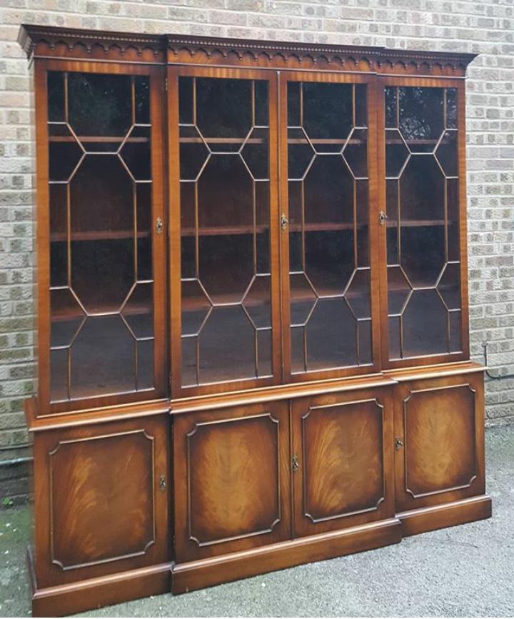 Reprodux Bevan Funnell Georgian Design Mahogany Breakfront Library Bookcase