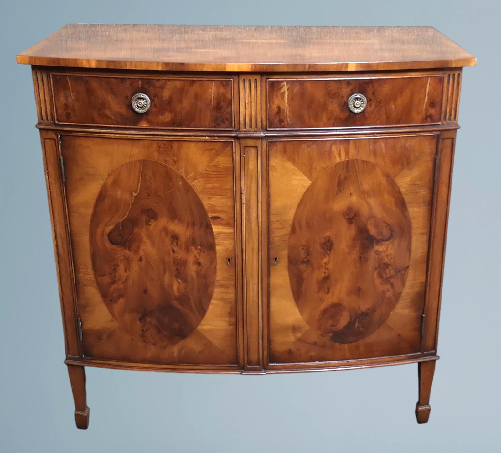 Reprodux Bevan Funnell Yew Wood Bow Front Side Cabinet