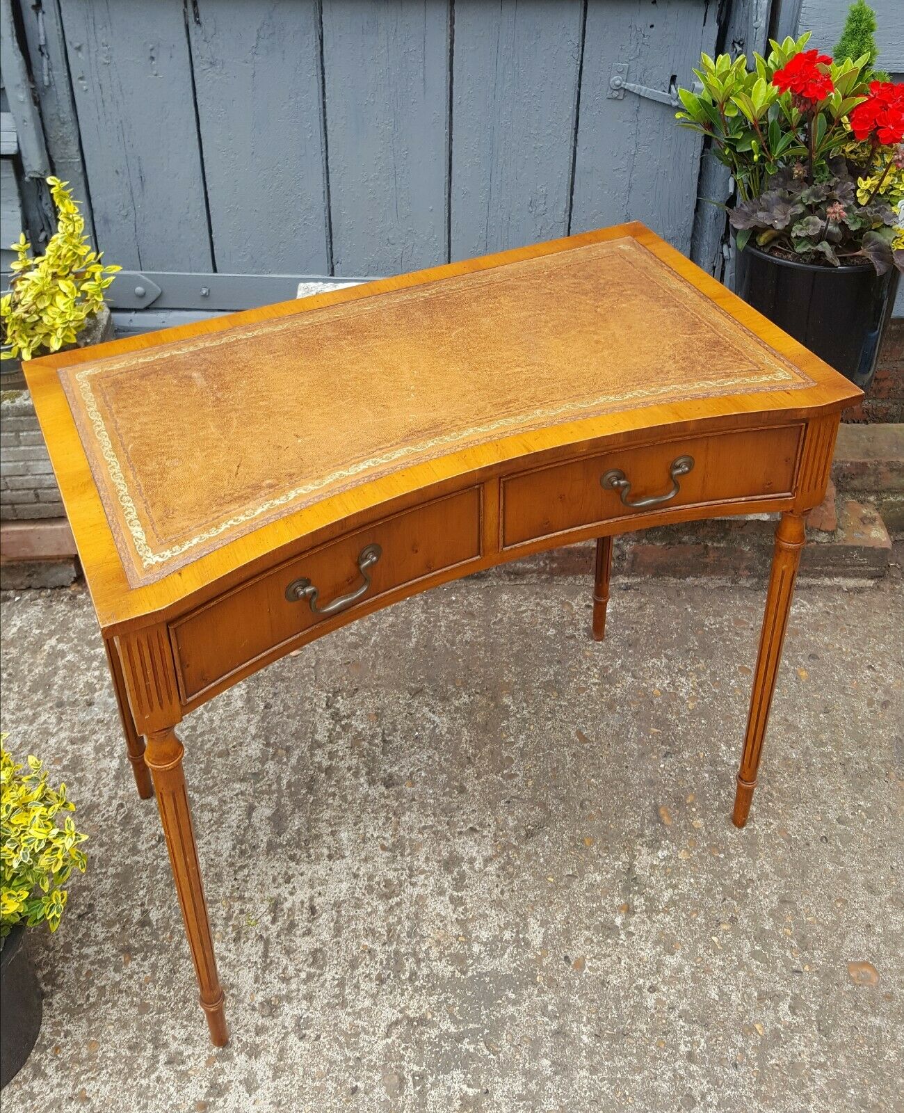 Reprodux Bevan Funnell Yew Wood Concave Writing Desk