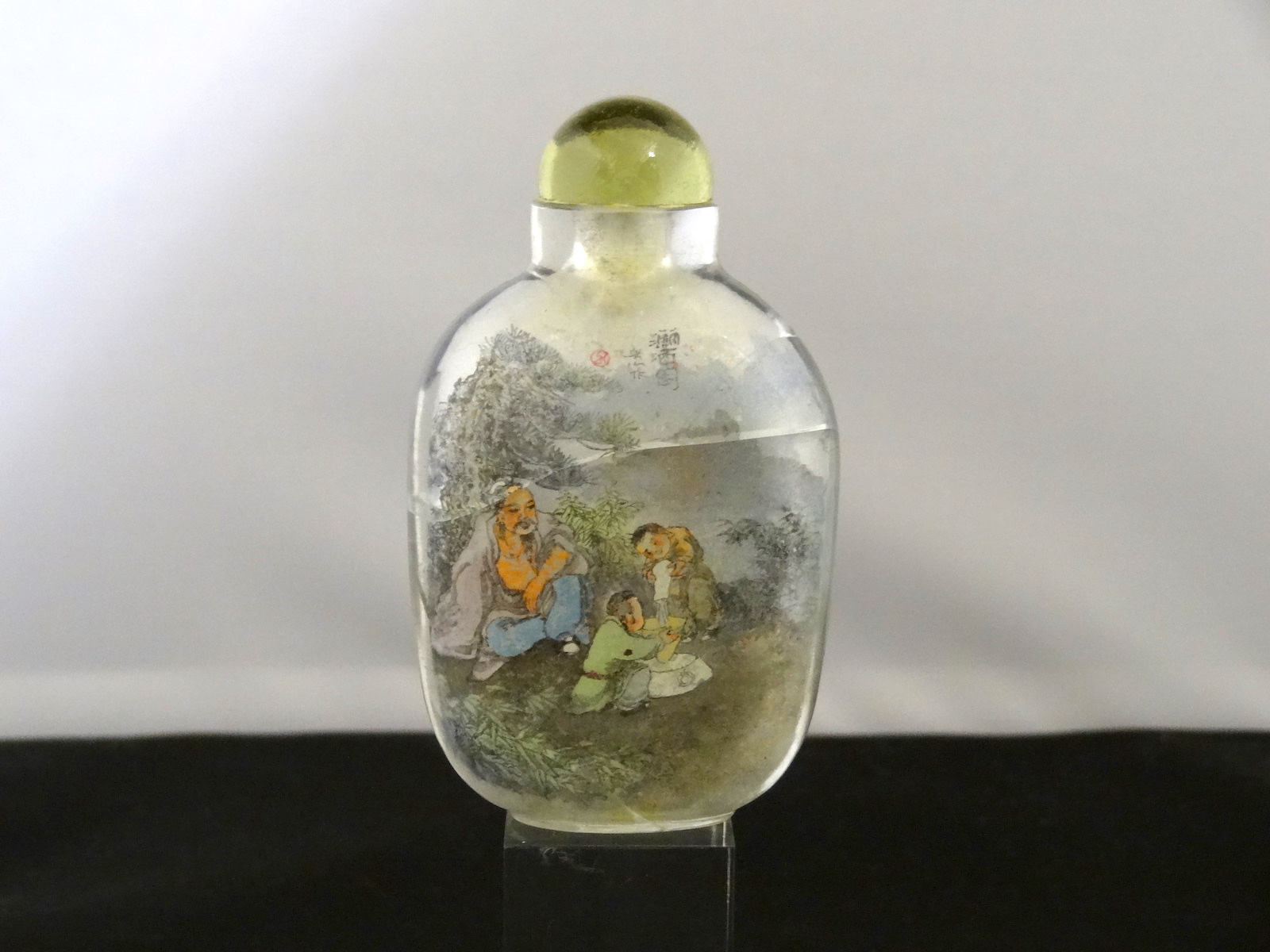 Restored Chinese Interior Painted Glass Snuff Bottle, Painted with Groups of Figures in Landscape c.1900