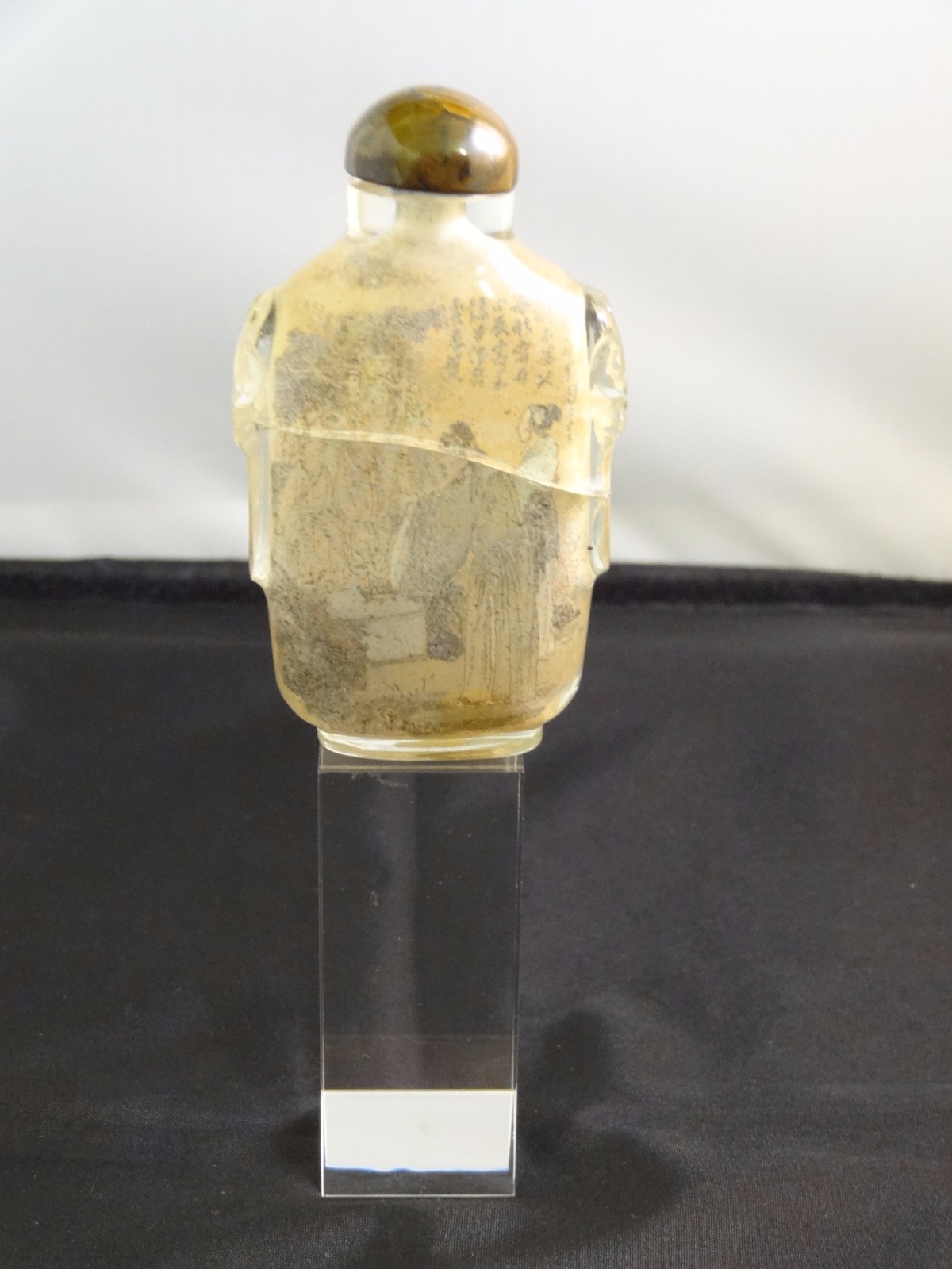 Restored Chinese Interior Painted Glass Snuff Bottle, Painted with Three Figures in Exterior and Poetic Text c.1900
