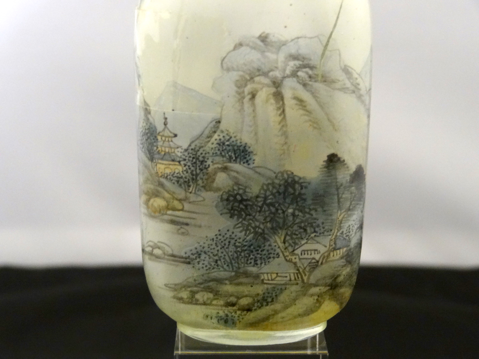 Restored Chinese Interior Painted Glass Snuff Bottle, Tall Rounded Shape, Late 19th Century