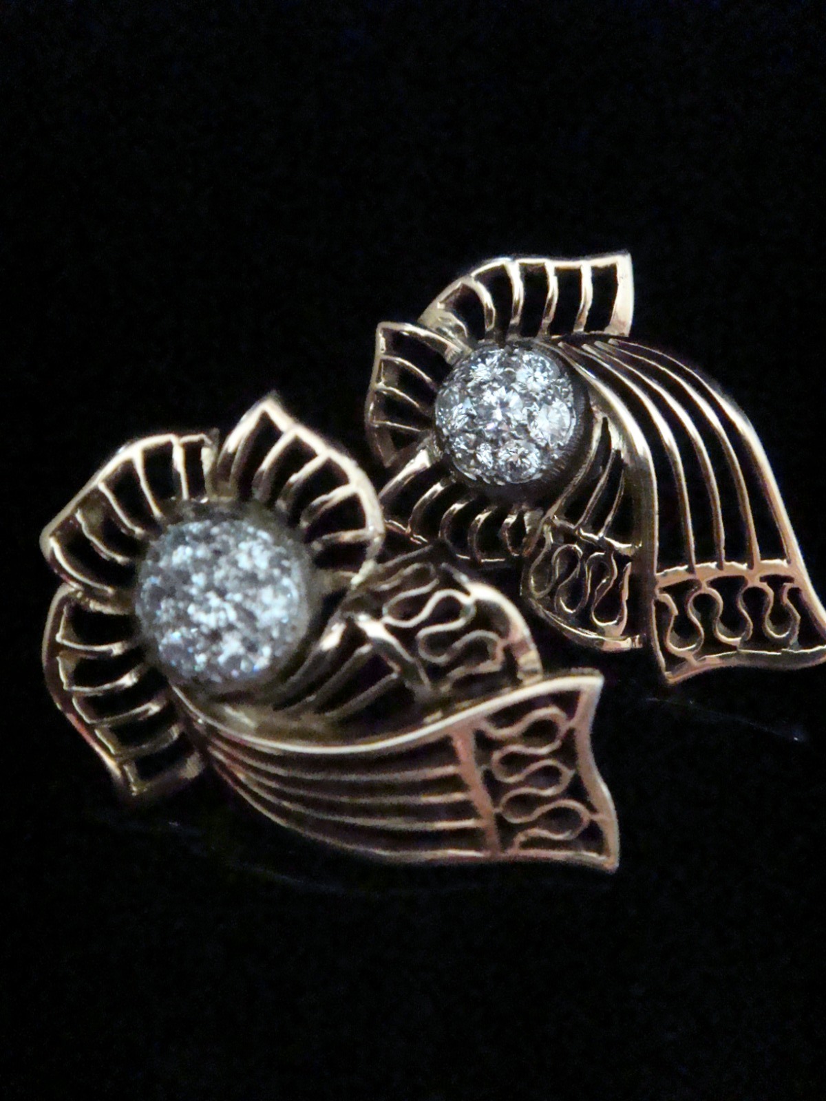 Retro 18ct Yellow Gold Handmade Diamond Cluster Earrings