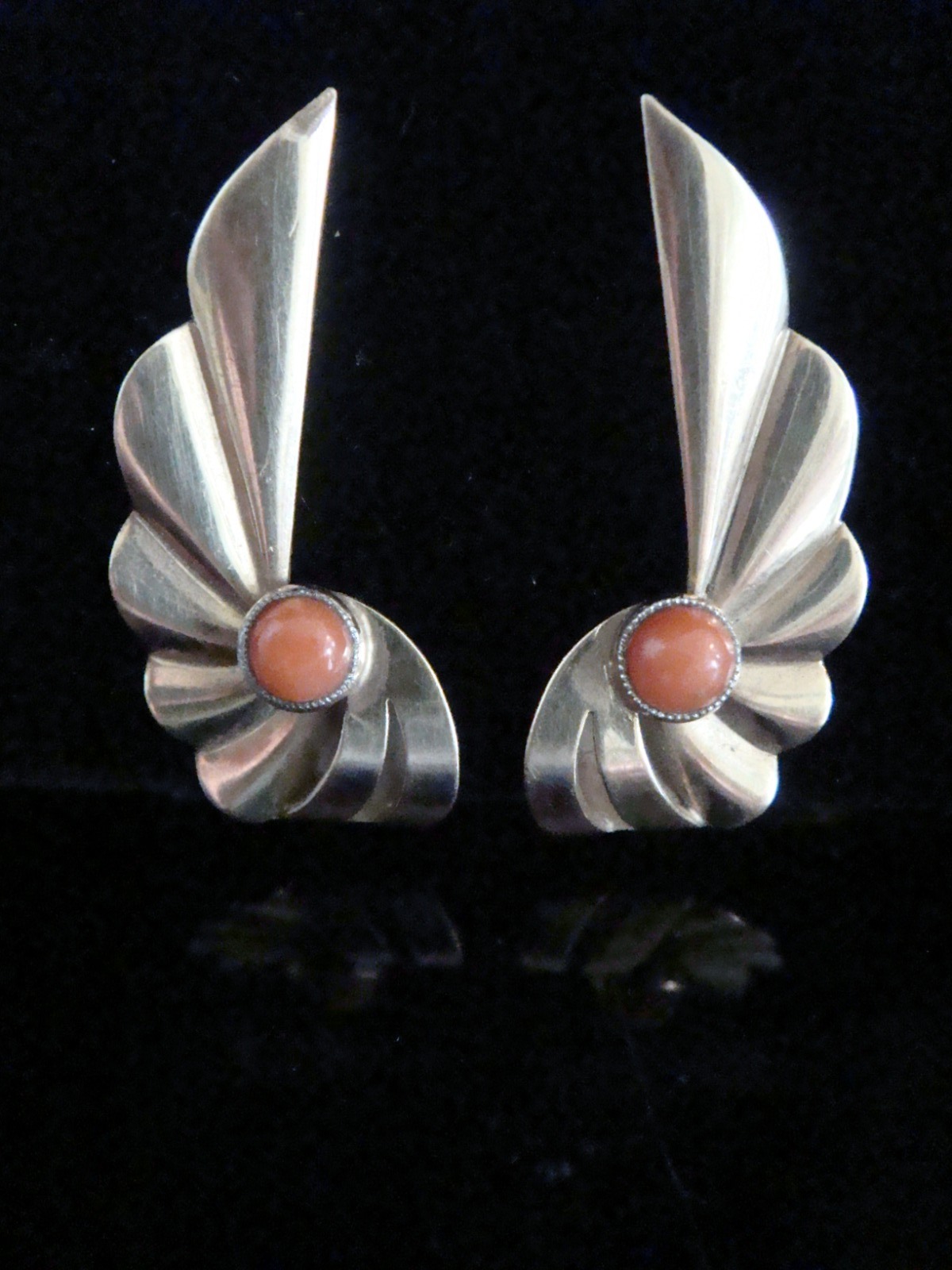 Retro 1940s 9ct Yellow Gold Natural Coral Clip Earrings