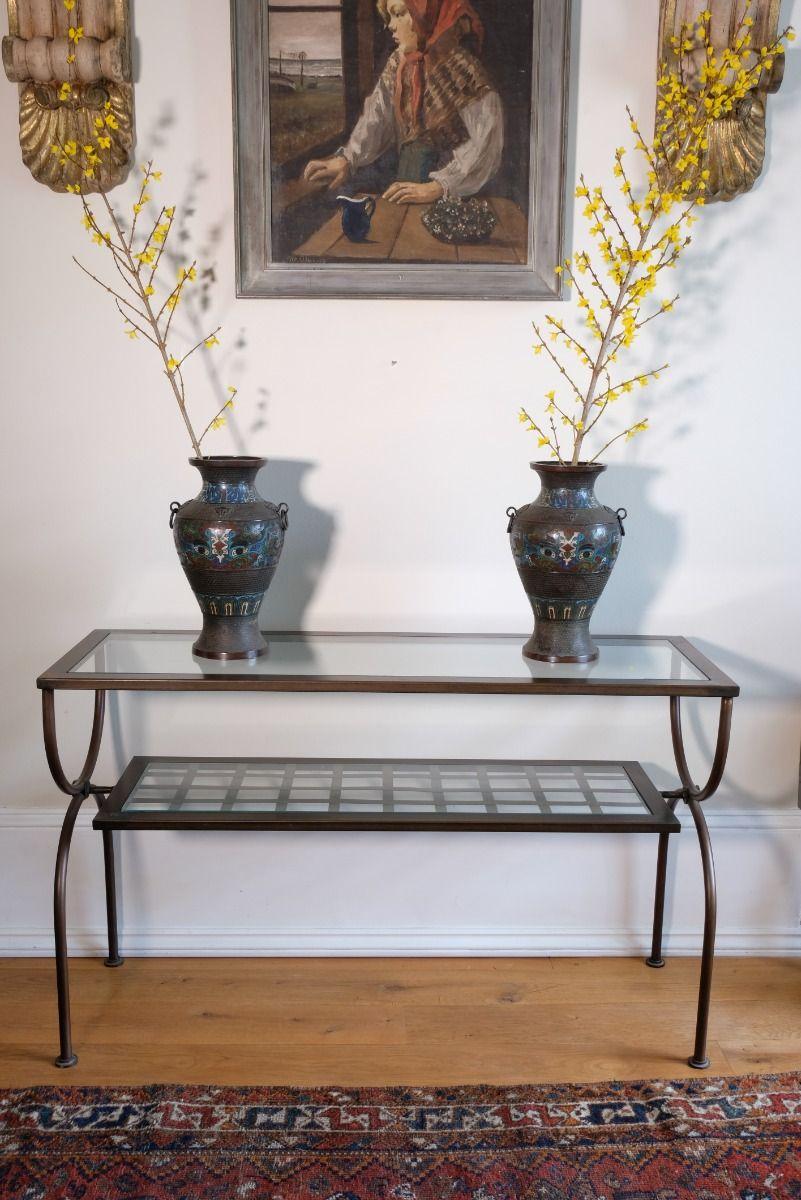 Retro Console Table Metal & Glass with Patinated Copper Finish