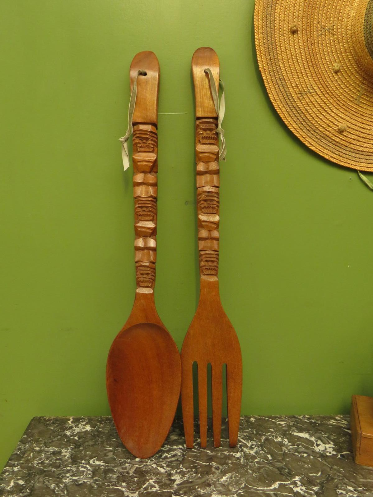 Retro Kitsch Wall Decor Wooden Large Spoon & Fork