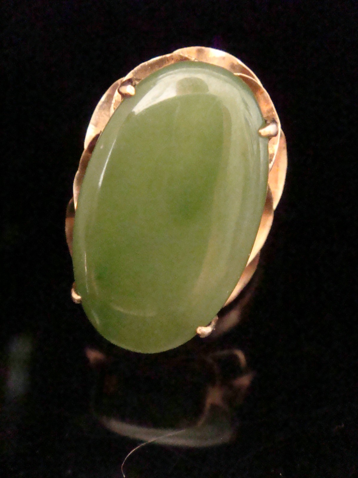 Retro Large 18ct Yellow Gold Jade Ring