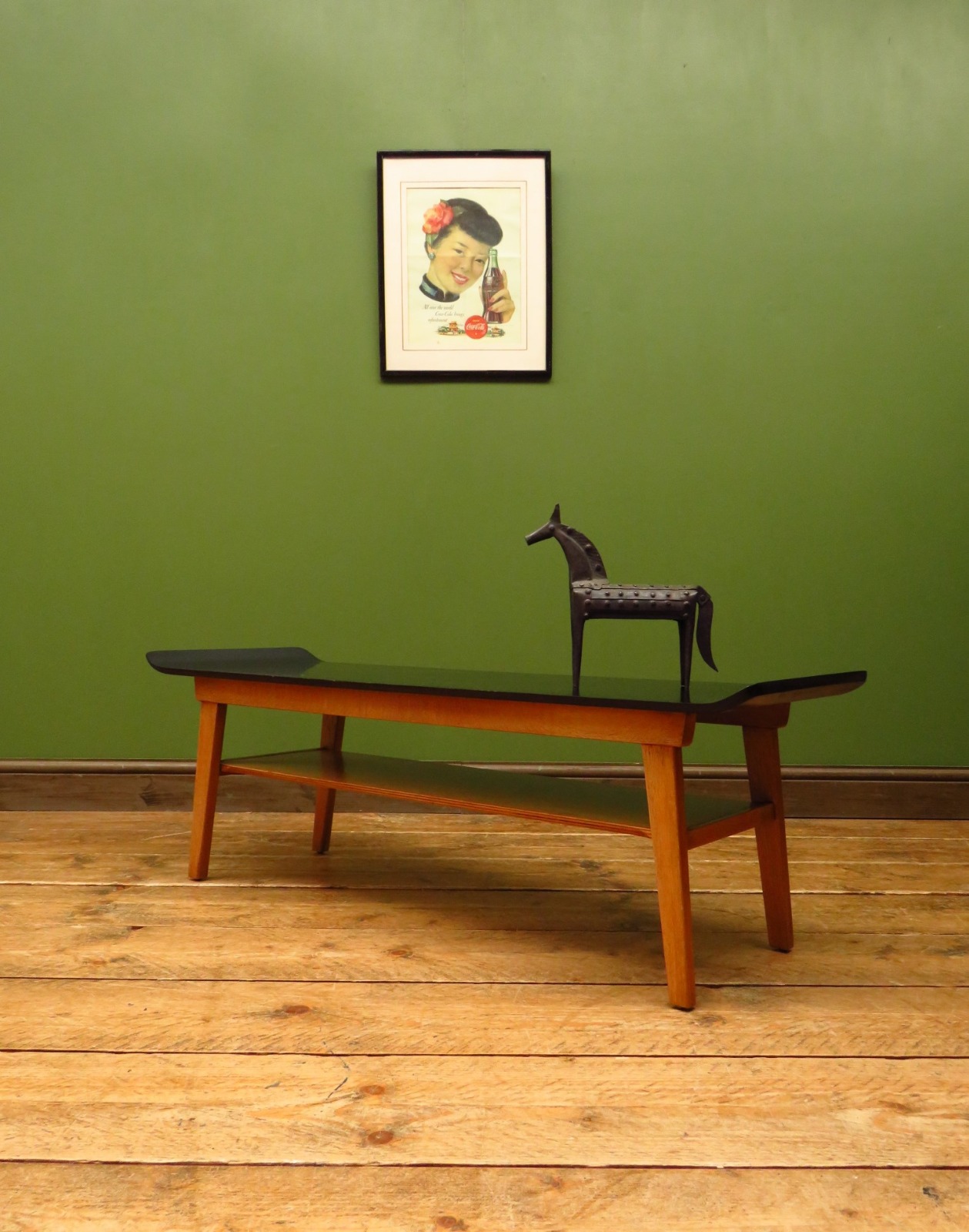 Retro Mid Century Myer Bentwood Coffee Table with Glossy Black Top