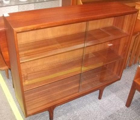 Retro Teak Bookcase with Glass Sliding Doors