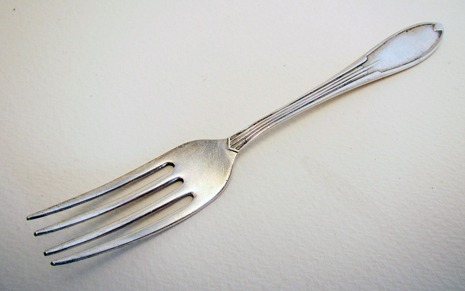 Retro Vintage Design Solid Sterling Silver Fruit / Dessert Fork 5 1/4' 1962 Modernist