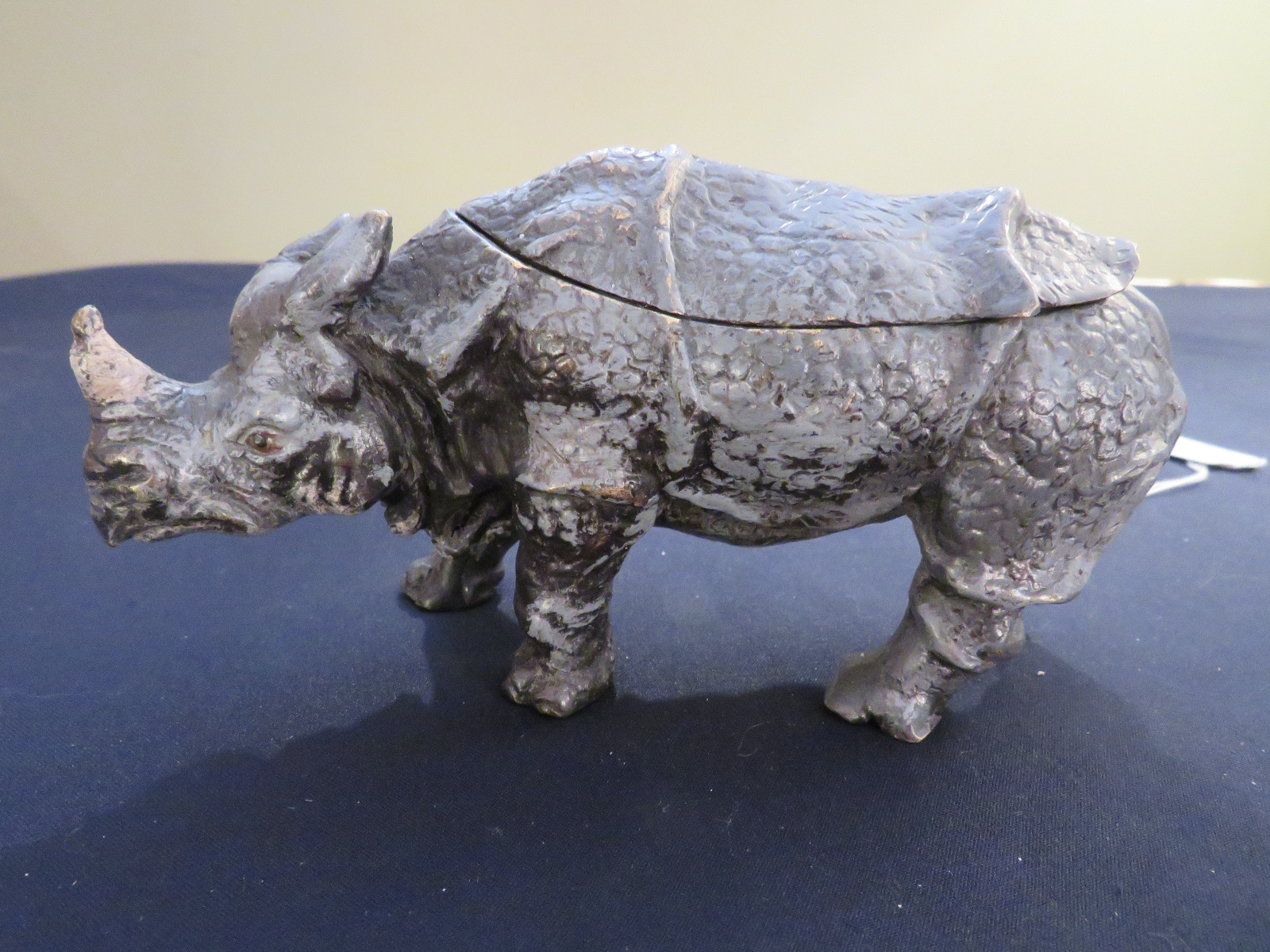 Rhinoceros Inkwell Cold Painted Bronze Geschutzt