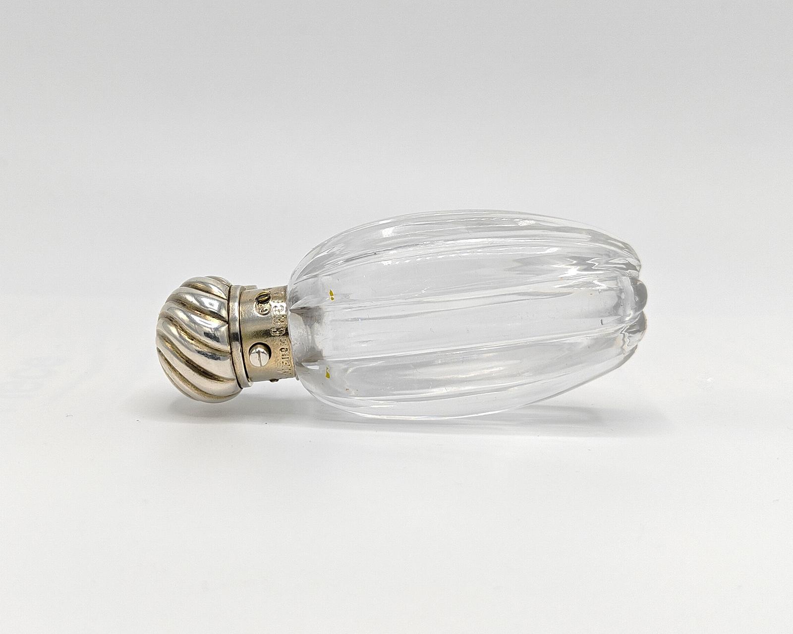 Ribbed Glass Scent Bottle with Silver Top by George Brace, London 1887