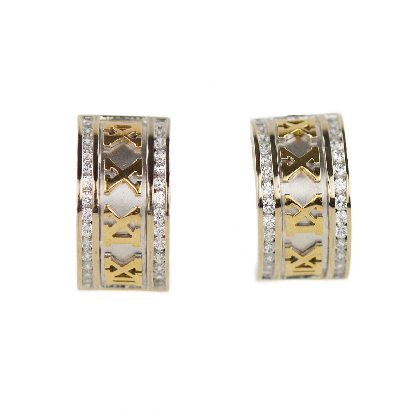 Ribbon, semicircular, two-tone gold earrings, 750 assay value, with diamonds. 13.28 gr.