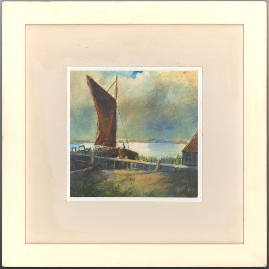 Richard Lannowe Hall - Monogrammed Gouache, Coastal Harbour Scene