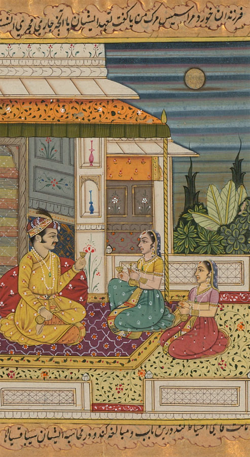 Richly Detailed Mughal 19th Century Gouache - Figures on a Balcony
