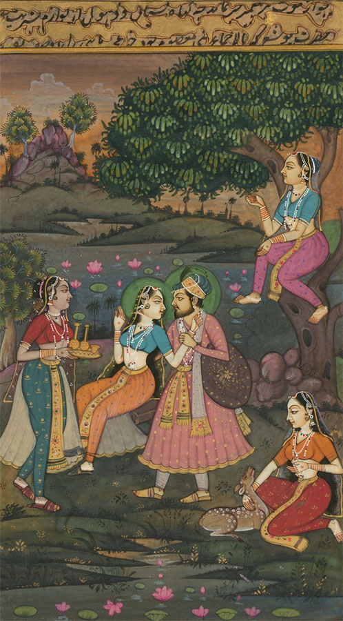 Richly Detailed Mughal 19th Century Gouache - Gathering in a Landscape