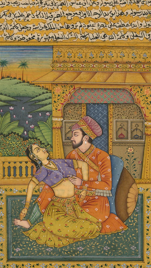 Richly Detailed Mughal 19th Century Gouache - Man & Woman