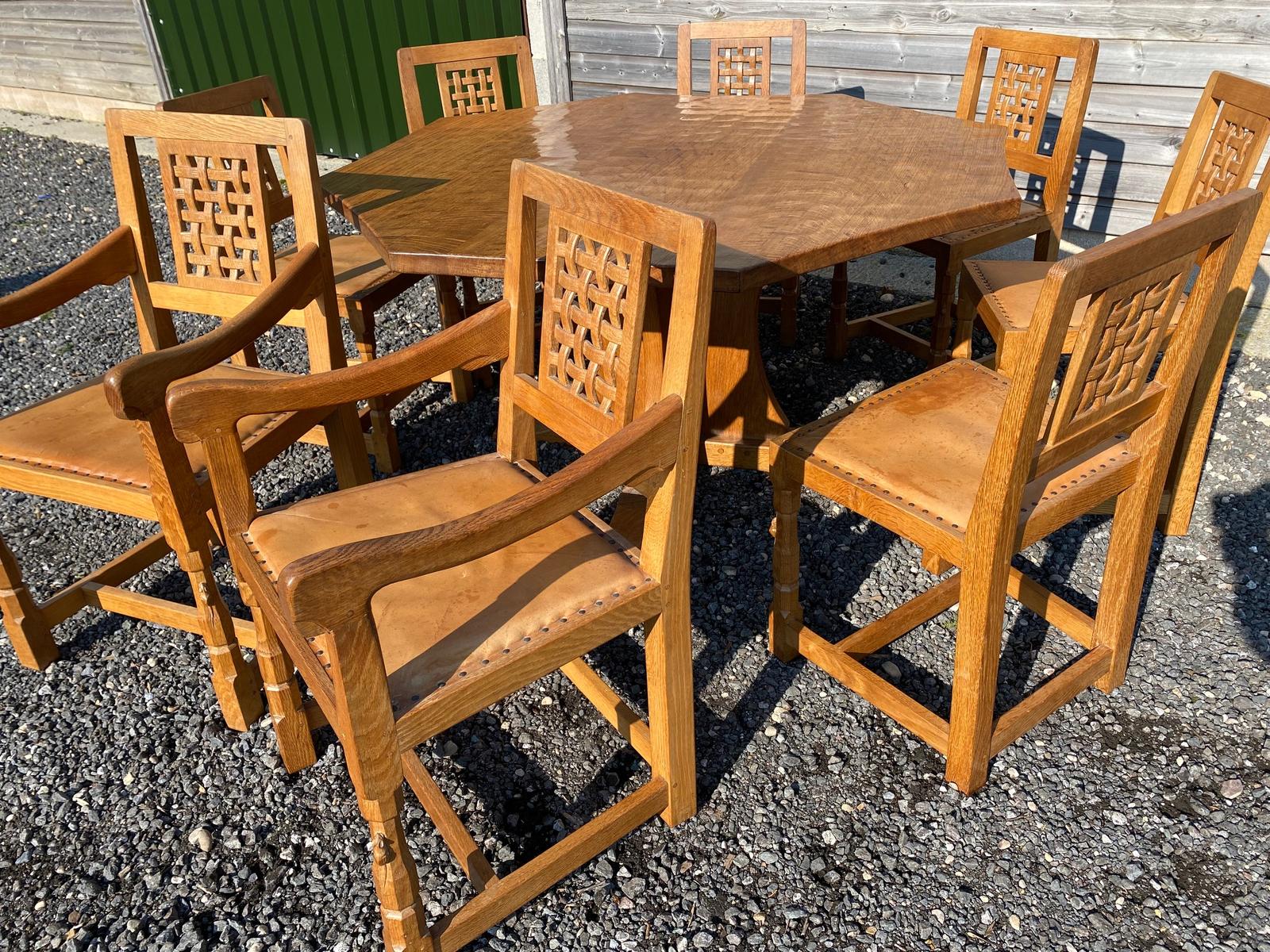 Robert "Mouseman" Thompson Octagonal Oak Dining Table & Eight Chairs