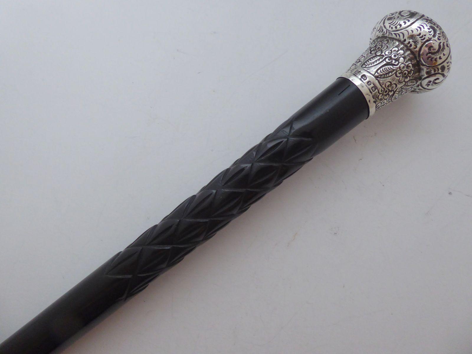 Robert Pringle Victorian Walking Stick Cane 1897 Hallmarked Solid Silver Top Ebony Shaft