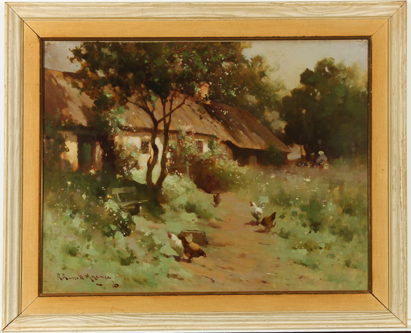 Robert Russell Macnee - Signed Scottish Oil, Cottage with Chickens