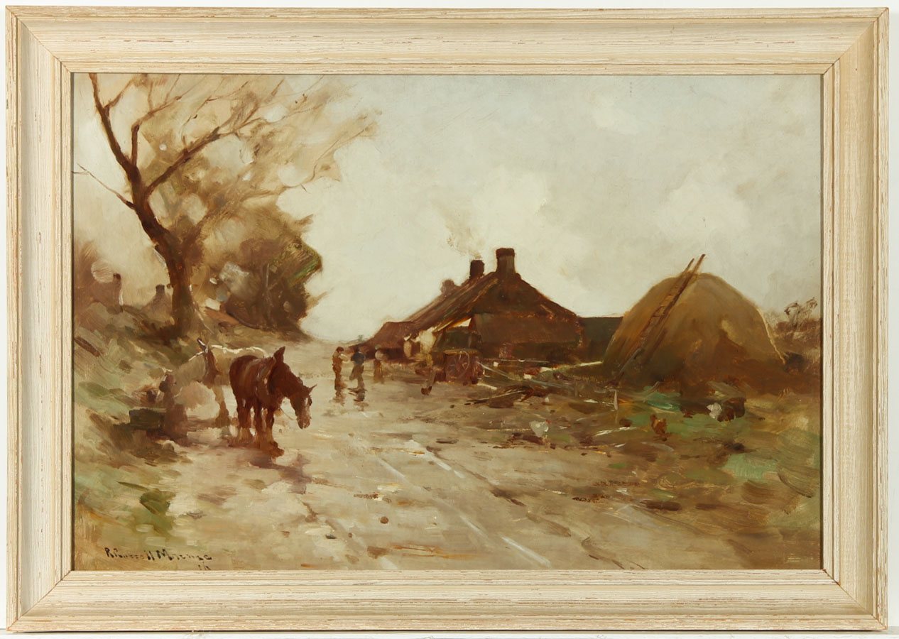 Robert Russell Macnee - Signed Scottish Oil, Horses in a Farmstead