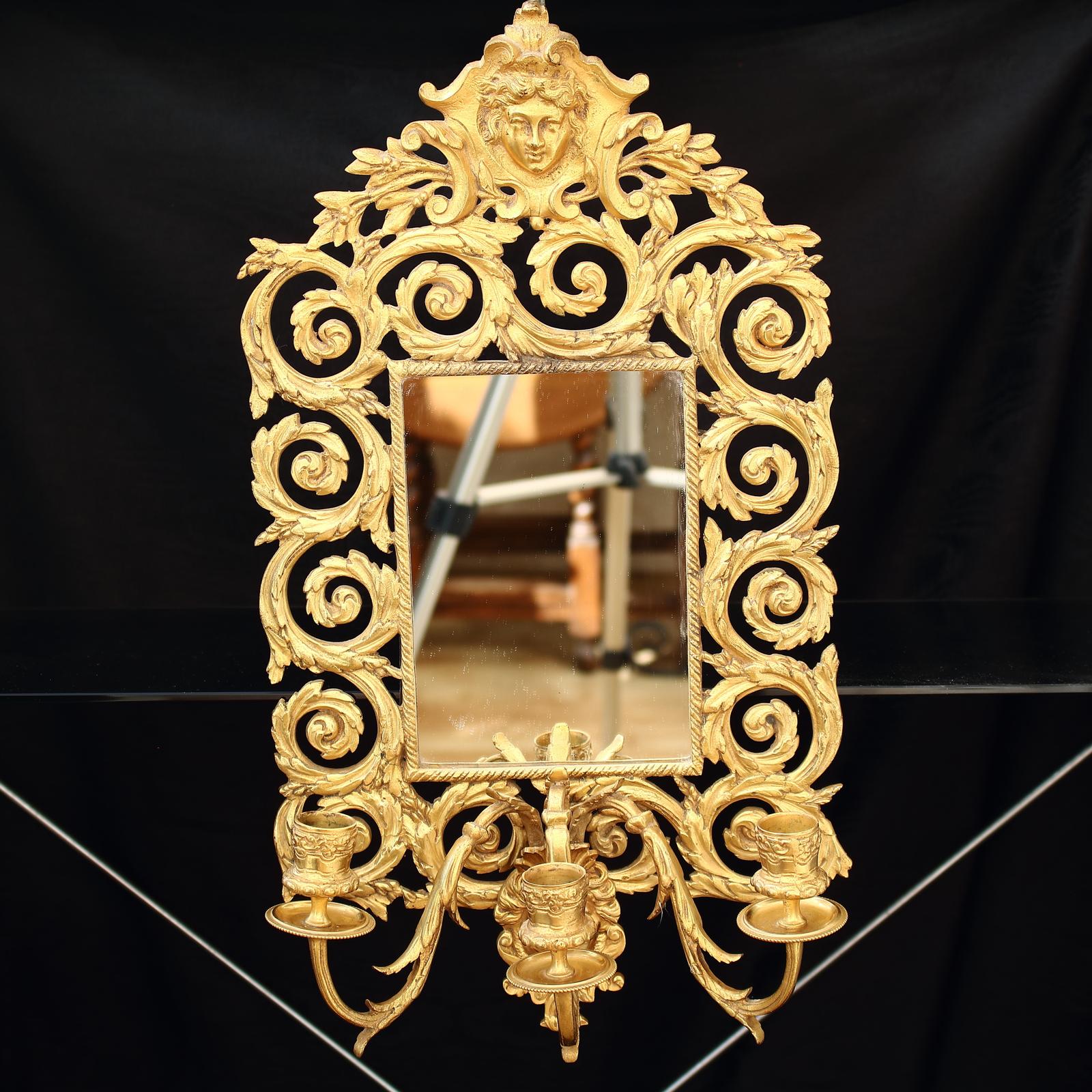 Rococo Ormolu Girandole Wall Mirror Three Lights