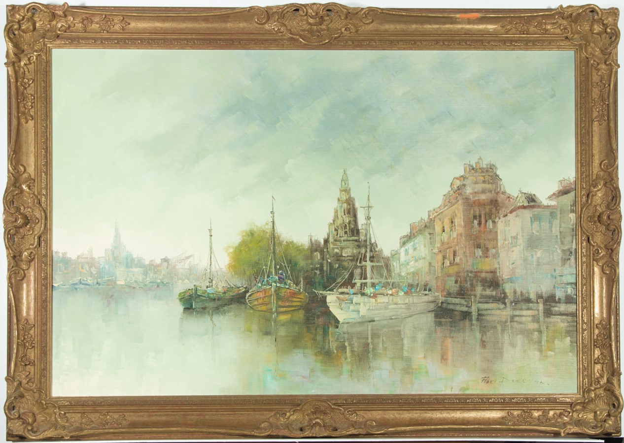 Roel Dozeman - Large Impressive 20th Century Oil, Harbour Scene