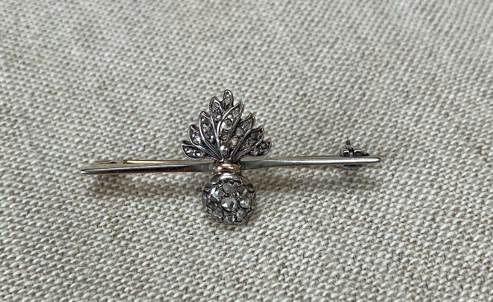 Rose Cut Diamond & Gold Military Sweetheart Brooch