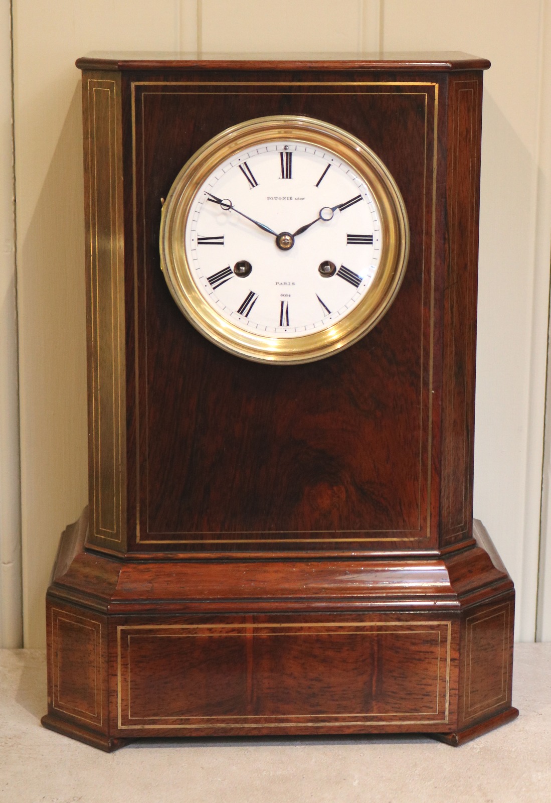 Rosewood & Brass Inlay French Mantel Clock c.1850