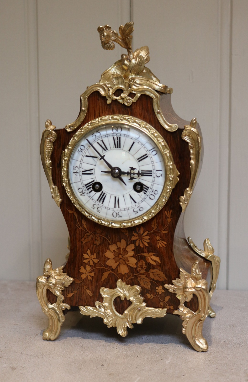 Rosewood & Marquetry Bell Striking Mantel Clock, France 1889 (1 of 1)