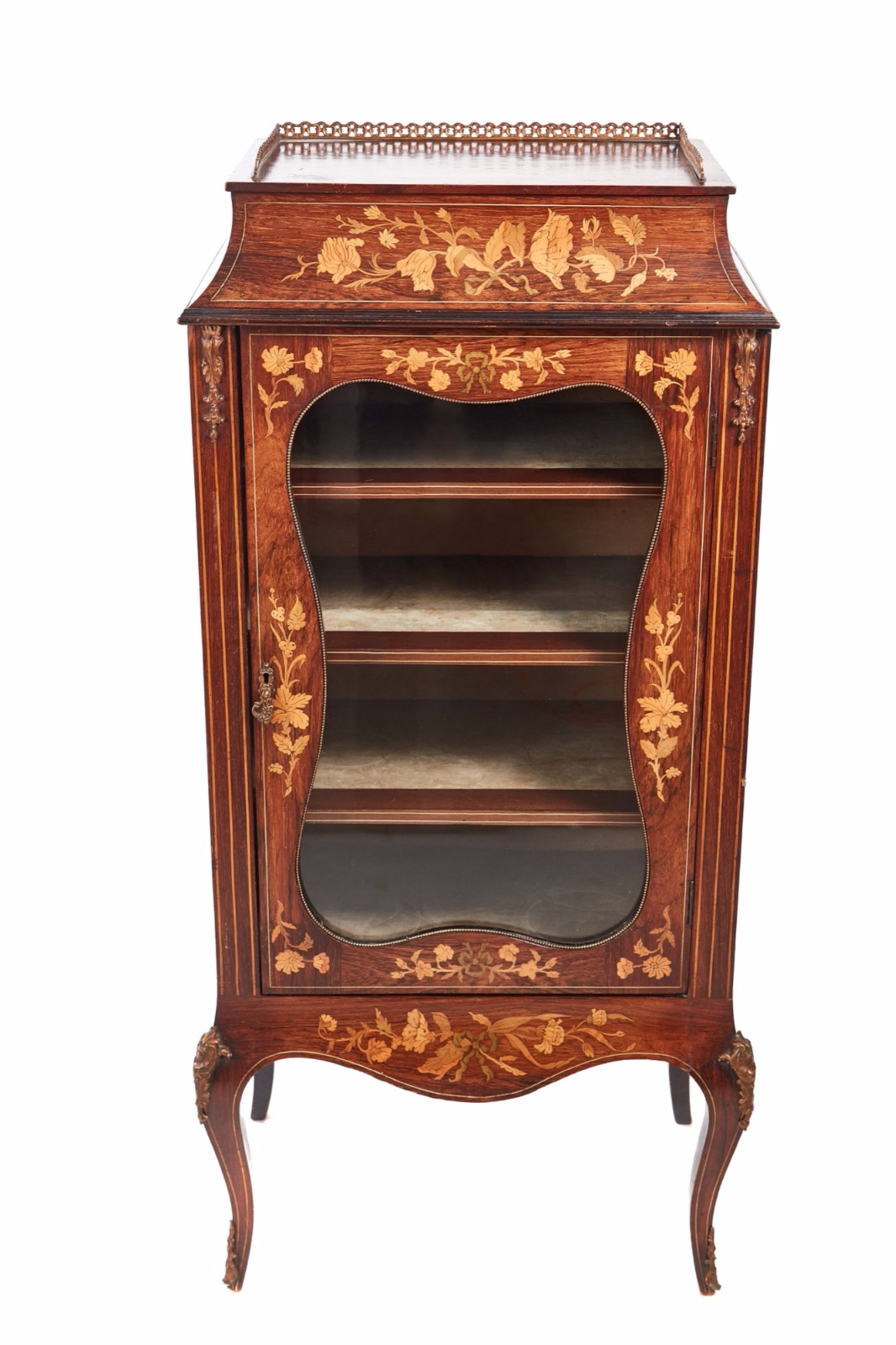 Rosewood Marquetry Inlaid Display Cabinet C.1860