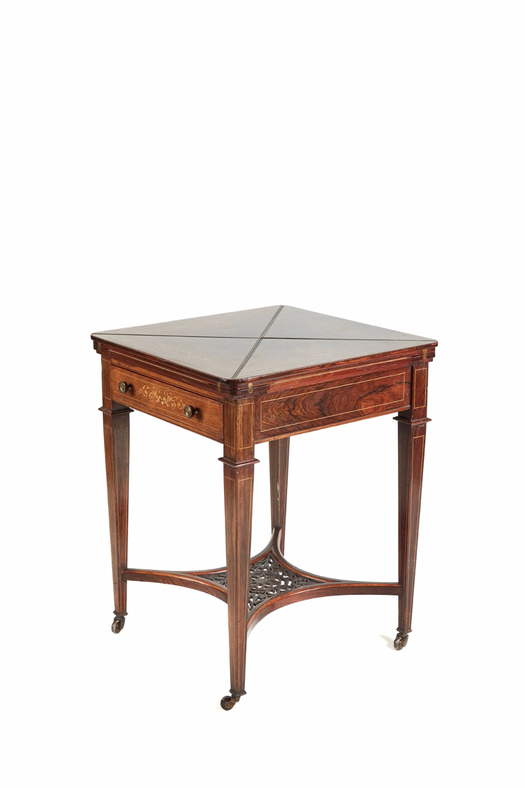 Rosewood & Marquetry Inlaid Envelope Card Table c.1890
