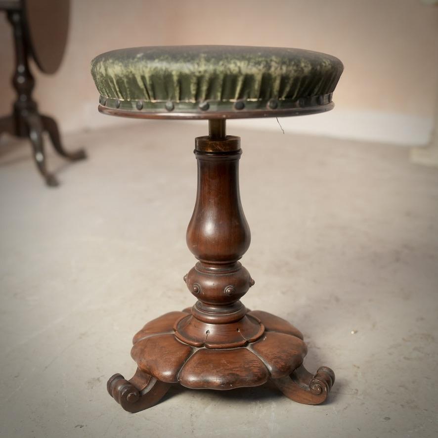 Rosewood Piano Stool Leather Victorian Height Adjustable Revolving