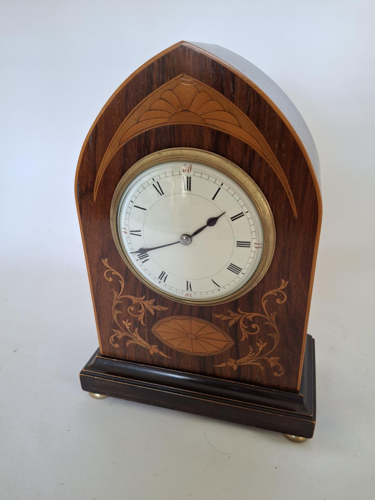 Rosewood & Satinwood Inlaid Mantel Clock