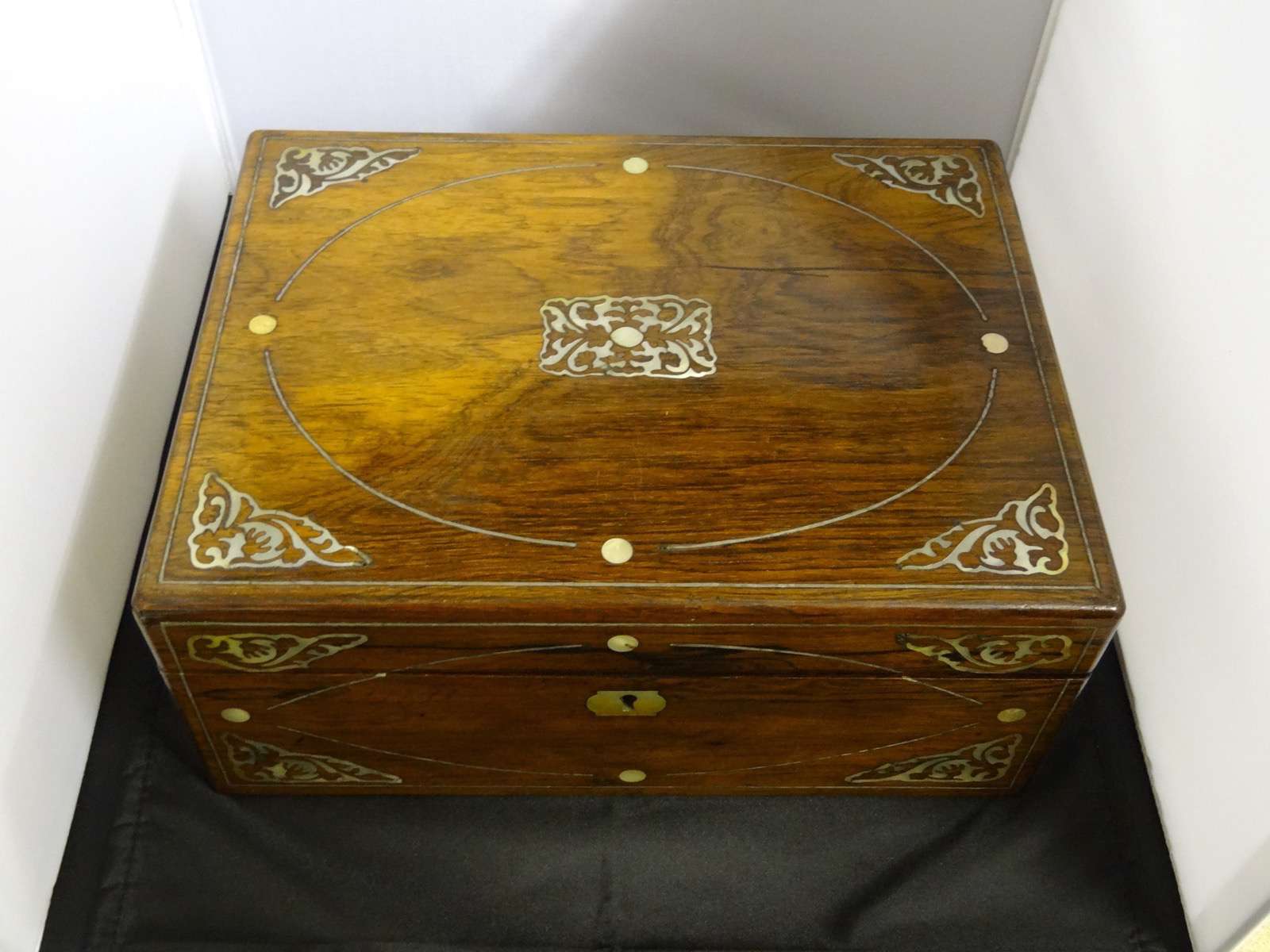 Rosewood Writing Box, Inlaid Mother-of-Pearl Foliate Spandrels c.1840