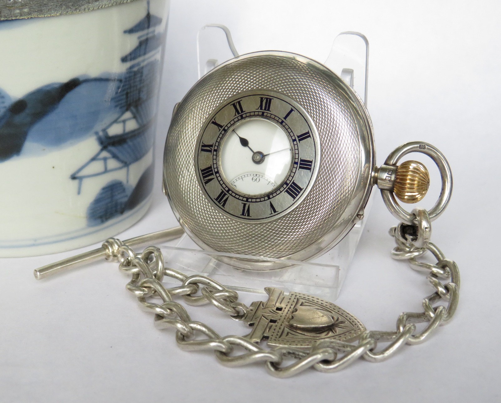Rotherhams Silver Half Hunter Pocket Watch & Chain