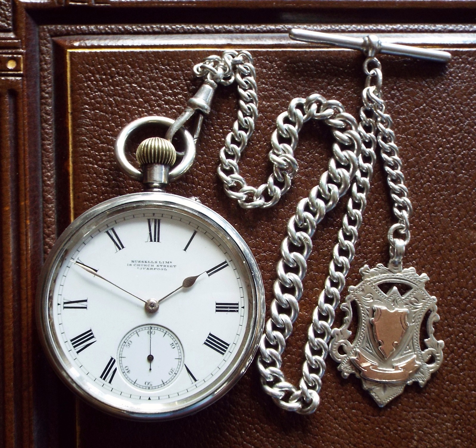 Rotherhams Silver Pocket Watch for Russells with Silver Chain