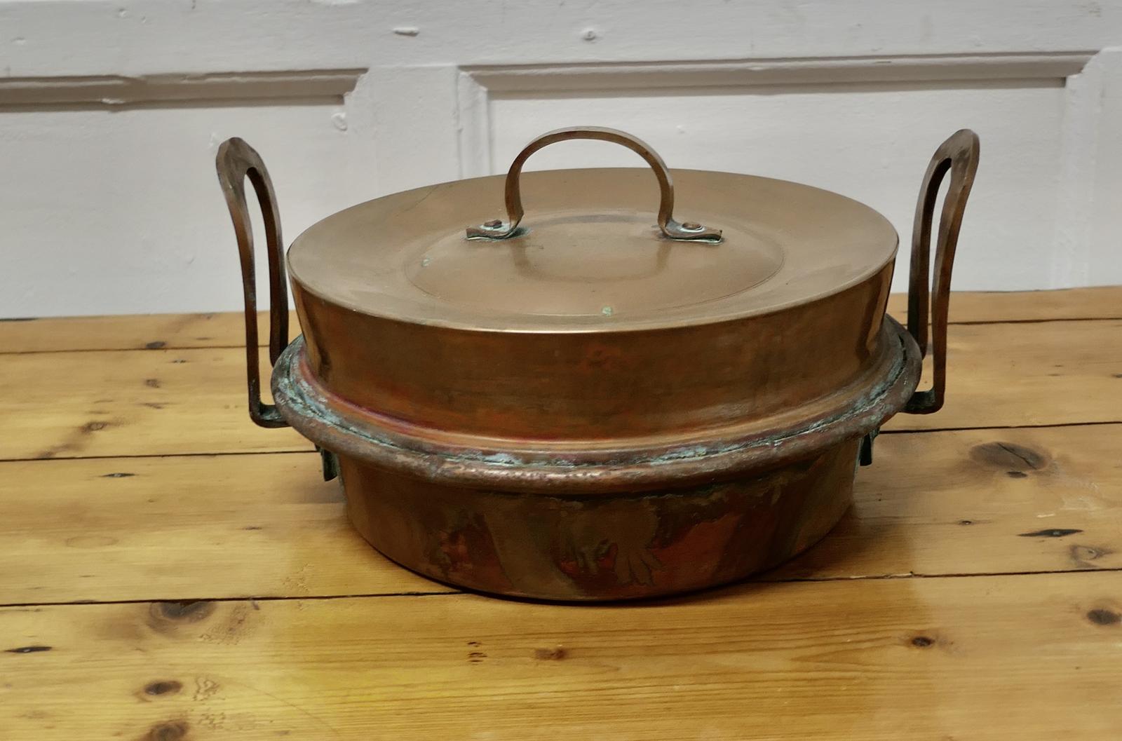 Round 19th Century Copper Steaming or Warming Pan with Lid