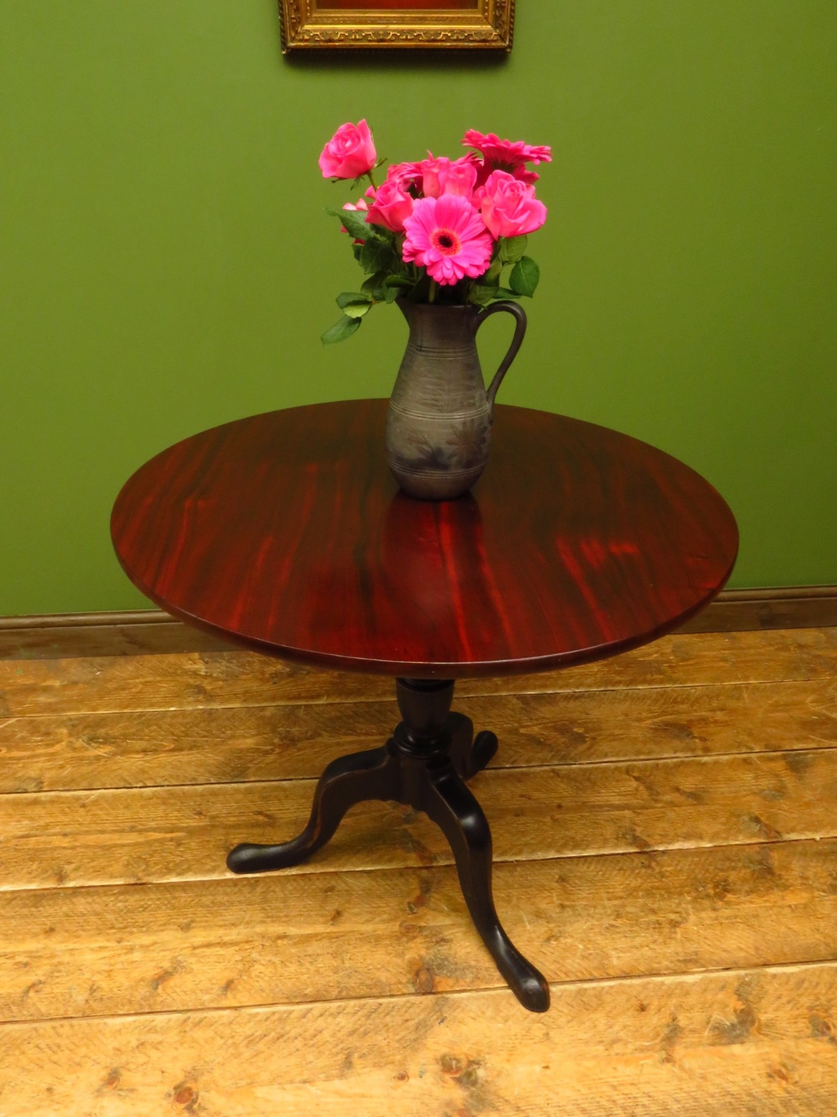 Round Dining or Hall Table with Gothic Black Base & French Polished Top Tilt Top