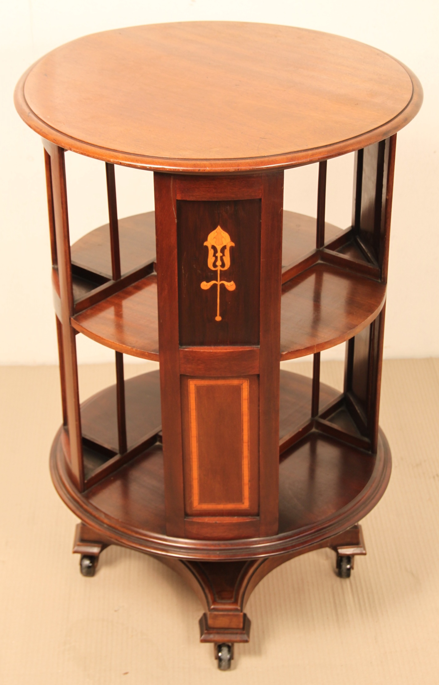 Round Inlaid Mahogany Revolving Bookcase c.1900 (1 of 1)