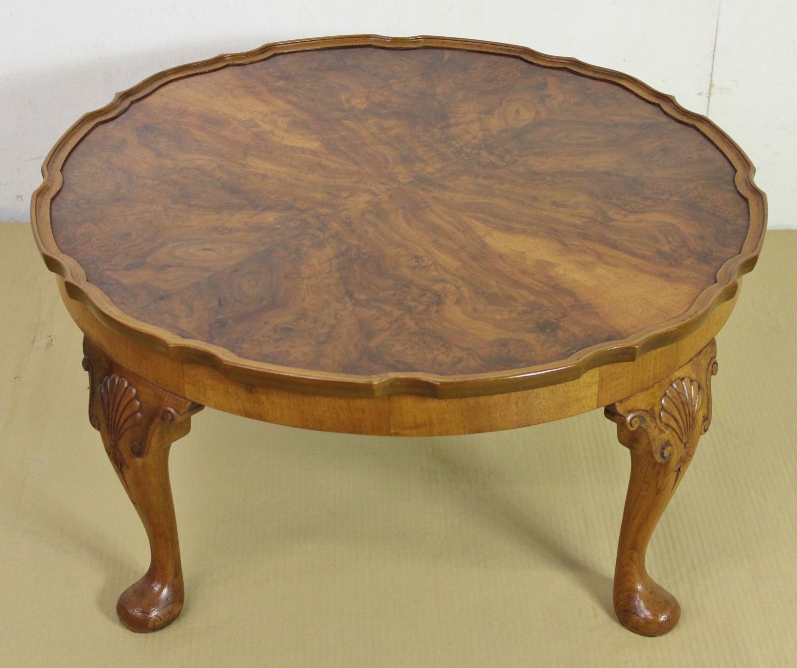 Round Queen Anne Style Burr Walnut Coffee Table c.1920 (1 of 1)